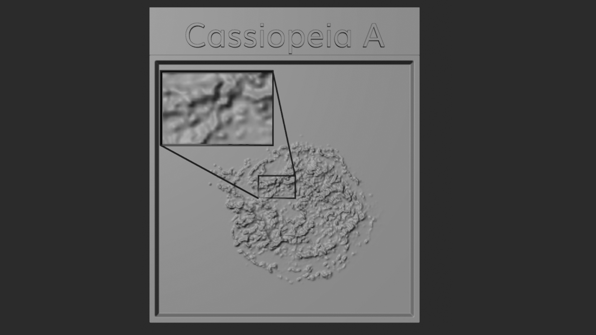 3D Printable Files: Cassiopeia A, Image with Inset(3D Print Credit: NASA/CXC/A. Jubett, using software by Tactile Universe/N. Bonne & C. Krawczyk & Blender)