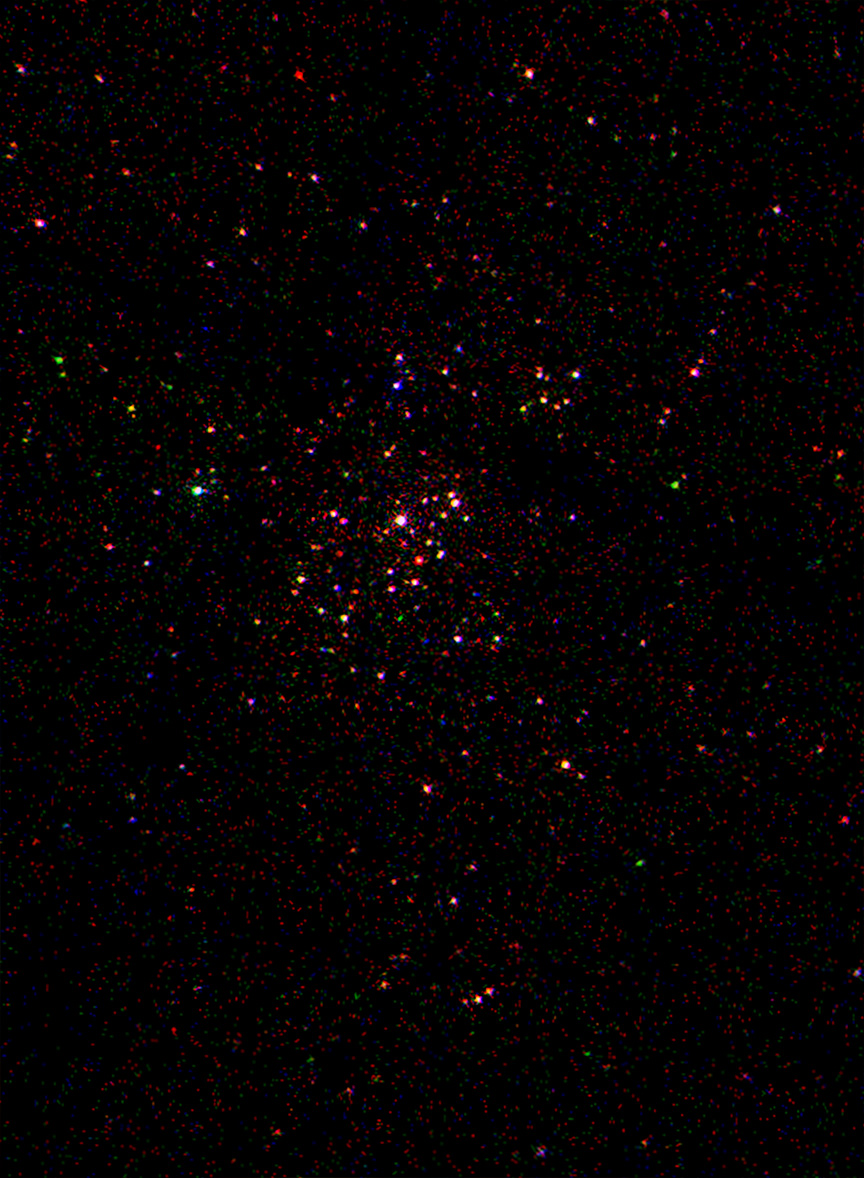 Nebula NGC 6357 that contains Pismis 24, a young cluster of stars about 5,500 light-years from Earth. This stellar landscape is reminiscent of a winter vista in a view from NASA’s James Webb Space Telescope (red, green, and blue). Chandra data (red, green and blue) punctuate the scene with bursts of colored lights representing high-energy activity from the active stars.