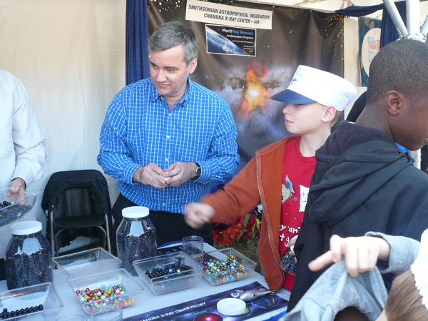 Most of the kids who came to the Chandra booth took part in our activity that let them “build” their own their own Universe out of dark matter and dark energy (black marbles) and normal matter (colored marbles.) Others were able to learn more about Chandra – and many other topics in astrophysics -- from our resident experts for the weekend. Thanks to the Festival organizers for making the weekend such a success.