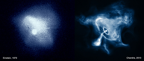 Einstein Observatory/Chandra X-ray Observatory image comparison of the Crab Nebula
