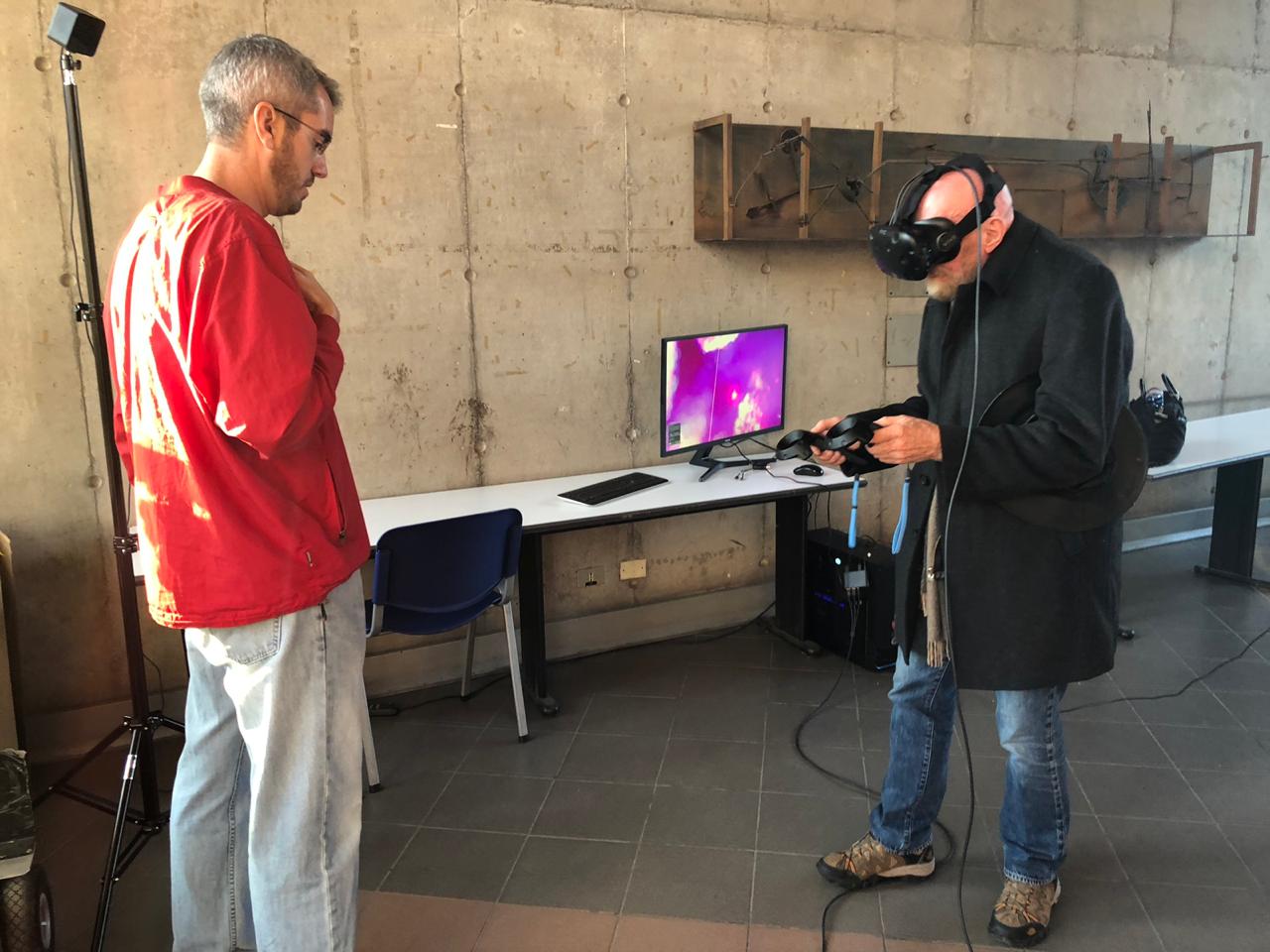 The key to this whole project being successful was having talented students to work with. Miguel Sepúlveda, an undergrad from neighboring Universidad de Chile, and I pivoted from a malware-canceled VR project to getting the Galactic Center simulations into phone-based VR via the game engine Unity. Then Baltasar Luco, an undergrad from my university PUC, joined me in the VR Lab to develop the interface for exploring the simulations in room-scale VR. Since this was PC based instead of phone based, the computing capabilities were significantly increased, giving us the option to significantly ramp up the VR experience.