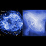 Supernovas are some of the most dramatic events in the cosmos. These titanic events send shock waves rumbling through space and create giant bubbles of gas that have been superheated to millions of degrees. Chandra has captured supernovas and the remnants they've left behind in spectacular X-ray images, helping to determine the energy, composition, and dynamics of these celestial explosions. More >