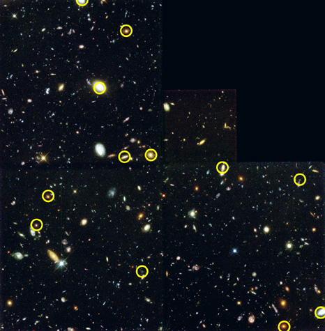 This side-by-side presentation of the Hubble Deep Field-North (left) and the Chandra Deep Field-North (right) clearly demonstrates the importance of looking at the universe in both the optical and X-ray regimes. Twelve X-ray sources are detected in the HDF-N. The false colors represent the "X-ray color" of the objects. Objects that appear more red are cooler in the X-ray band, while objects that appear more blue are hotter in the X-ray band. About half of the sources show strong evidence that the X-rays are due to accretion onto supermassive black holes. The other sources have much lower luminosities, and in several cases are fairly nearby. In these galaxies, the Chandra X-ray detection is most likely the summed emission from a handful (or even one) bright sources within the galaxy, such as stellar-size black holes in binary star systems, the hot gas within the galaxy, or the remnants of supernova explosions. Chandra is thus now peering far enough into the universe to detect the type of X-ray emission that one finds in "normal" galaxies such as the Milky Way. This allows us to look back several billion years to see what our own galaxy and neighborhood (the Local Group) might have been like at earlier times.