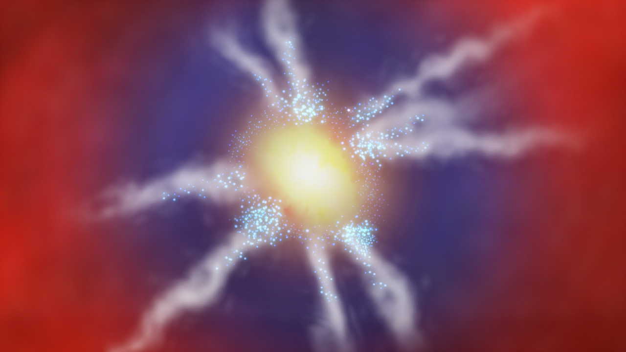 This animation shows how large numbers of stars form in the Phoenix Cluster. It begins by showing several galaxies in the cluster and hot gas (in red). This hot gas contains more normal matter than all of the galaxies in the cluster combined, and can only be detected with X-ray telescopes like Chandra. The camera then flies in towards the large elliptical galaxy at the center of the cluster. The hot gas near this galaxy is giving off copious amounts of X-rays and cooling quickly over time, as shown by the change to a blue color. This cooling causes gas to flow inwards along filaments and form huge numbers of stars when it continues to cool.