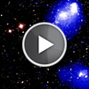 X-rays from Chandra are shown as blue and white, depicting fainter and brighter diffuse emission, respectively. This new composite image also includes an optical image from the Sloan Digital Sky Survey. The Chandra data revealed for the first time a shock wave — similar to the sonic boom from a supersonic aircraft — in hot gas visible with Chandra in the northern pair's collision. From this shock wave, researchers estimate two clusters are moving about 2 million to 3 million miles per hour (3 million to 5 million kilometers per hour), relative to each other.