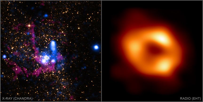 X-ray, Radio, & Infrared Images of Sagittarius A*(Credit: Chandra X-ray: NASA/CXC/SAO; Swift X-ray: NASA/GSFC/Swift; IR: NASA/HST/STScI; Radio: EHT Collaboration)