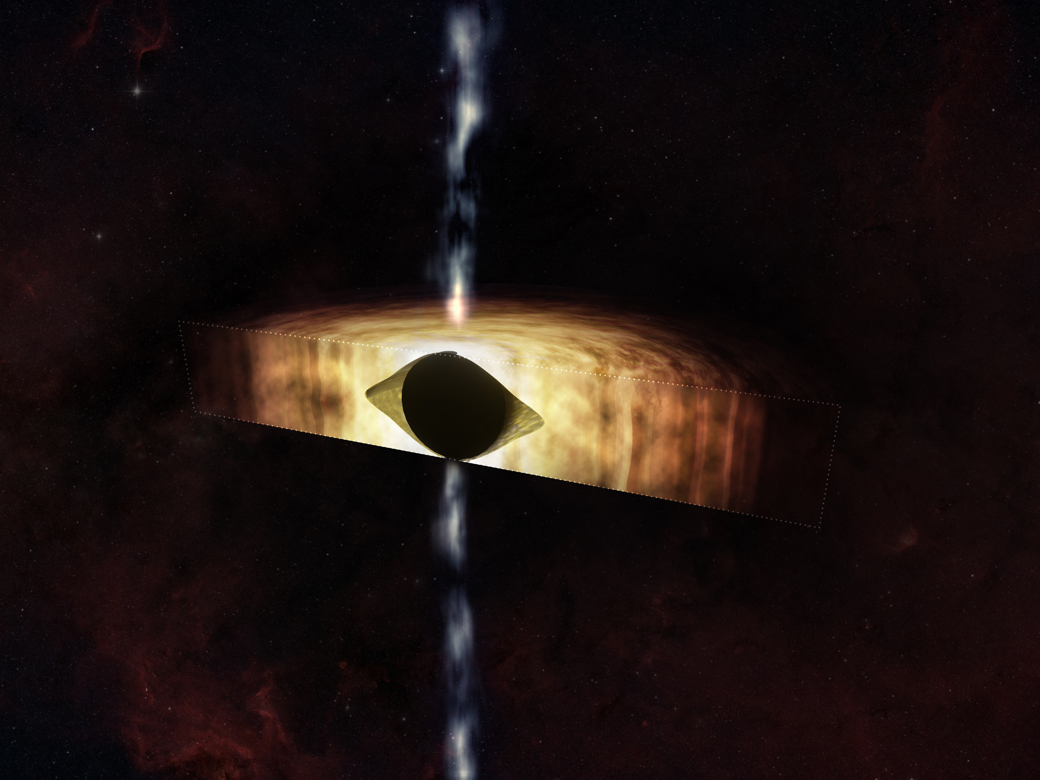 This artist's illustration shows a cross-section of Sagittarius A*, pronounced as "SAJ-ee-TARE-ee-us A-star", the supermassive black hole near the center of our Milky Way galaxy.