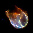 X-ray,optical,radio composite image of a supernova remnant.
