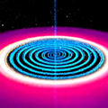 This artist's conception shows how material from the rotating, magnetized neutron star at the heart of the Crab Nebula is flung outward and along the axis to form a thick ring and jets.