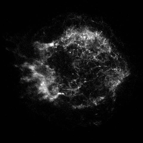 This visualization of Cassiopeia A shows that there are two main components to this supernova remnant: a spherical component in the outer parts of the remnant and a flattened (disk-like) component in the inner region.