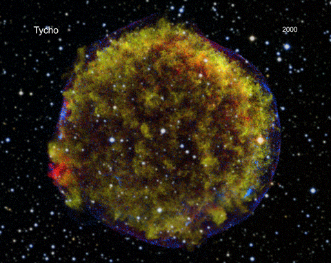 This debris field, which glows brightly in X-rays, was left over when a star exploded about 4,500 years ago.