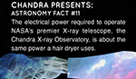 The electrical power required to operate NASA's premier X-ray telescope, the Chandra X-ray Observatory, is about the same power a hair dryer uses.