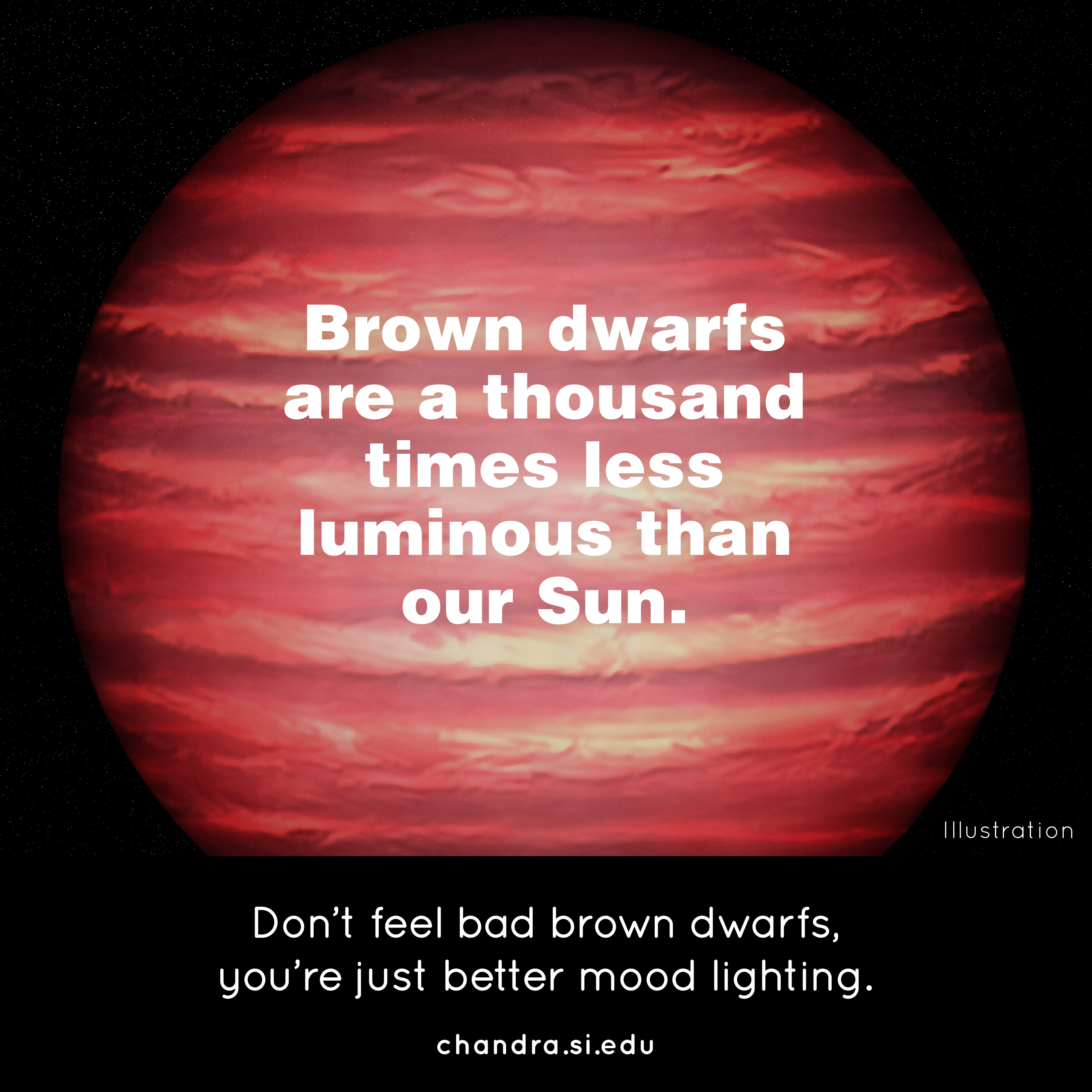 Brown dwarfs are a thousand times less luminous than our Sun.
