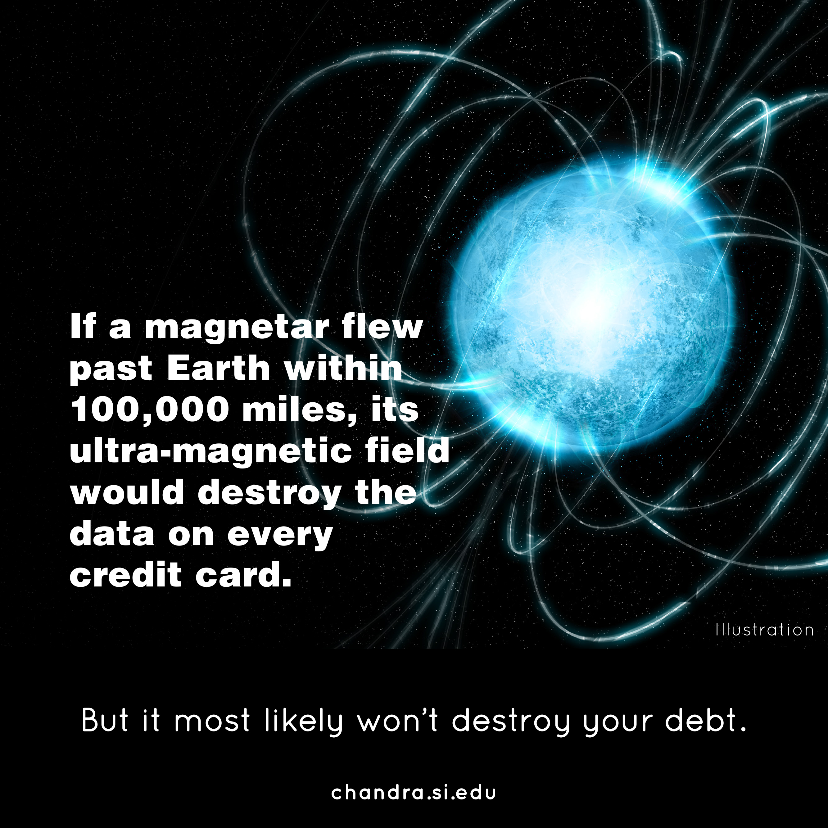 If a magnetar flew past Earth within 100,000 miles, its ultra-magnetic field would destroy the data on every credit card.