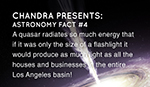 A quasar radiates so much energy that if it was only the size of a flashlight it would produce as much light as all the houses and businesses in the entire Los Angeles basin!