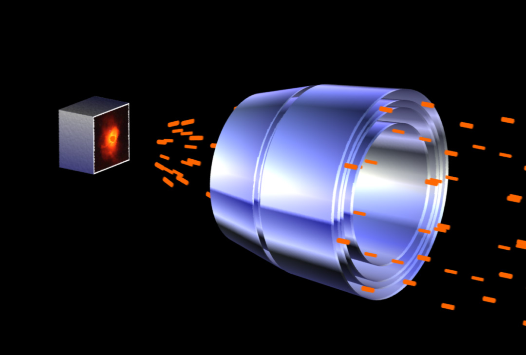 Here is a closeup showing the focusing of the X-rays onto an electronic detector. View the animation.